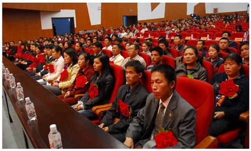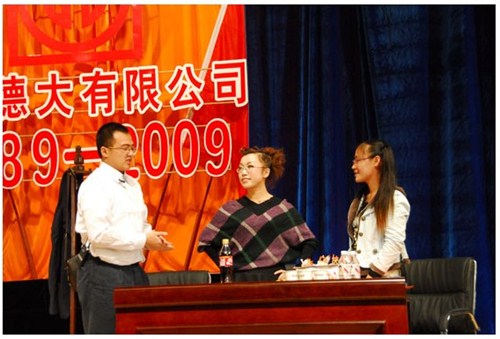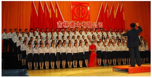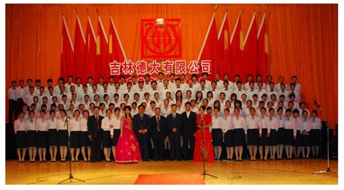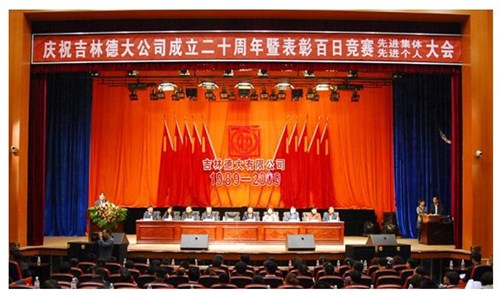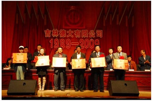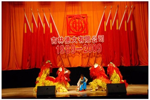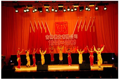 舉世同歡,六十載華夏慶盛世太平, 載歌載舞,二十年德大賀巨龍騰飛。 金秋九月,碩果飄香。在這收獲的季節,我們迎來了偉大祖國六十周年慶典,同時也迎來了吉林德大有限公司成立二十周年華誕,我們祝福偉大祖國繁榮富強,祝福德大公司事業蒸蒸日上。 二00九年九月二十八日,中共吉林德大有限公司黨委、工會、共青團委、婦委會在德惠市文化宮聯合舉辦“慶祝吉林德大有限公司成立二十周年暨表彰百日競賽先進集體、先進個人大會”。大會從下午一時開始,共進行了四個小時。大會由中共吉林德大有限公司黨委書記陳玉和主持。參會的公司領導有:于建平總裁、劉繼仲副總裁、唐彬副總裁、董事會殷淑蓮董事等,公司總部、各事業部主管及員工參會,參會總人數近800人。 大會共進行五項議程。 首先由于建平總裁發表重要講話,于總裁向全體員工表示衷心的感謝,感謝全體員工多年來為公司做出的巨大貢獻,同時向大家表示節日的祝賀,并回顧了公司發展的歷程,對公司今后的發展提出了新的要求和希望。 接下來公司黨委副書記劉忠臣宣讀了表彰決定,對在“振興德大、從我做起”百日競賽活動中涌現出的先進集體及先進個人進行表彰,由主席臺就坐的各位領導向獲獎的先進集體和先進個人頒獎。共評選出先進集體6個、先進個人98人,其中優秀黨員15人,優秀團員 9人,青年突擊手10人,巾幗標兵22人,勞動模范21人,生產能手21人,由食品事業品管部高鳳紅代表先進集體和先進個人講話,她代表先進集體和個人表達了繼續努力,為公司發展做貢獻的決心。先進集體、先進個人的表彰起到了鼓舞士氣、振奮人心的作用,給廣大員工樹立了工作的典范和學習的榜樣。 頒獎儀式之后舉行了盛大的文藝演出,參加演出單位有種禽事業部、肉雞自養事業部、肉雞放養事業部、飼料事業部、食品事業部、總裁室、采購中心等。節目類型多樣,內容豐富多彩,有獅子舞、男女聲二重唱、四句半、藏族舞蹈、獨唱、小品、坐唱、詩朗誦、音樂快板、京劇聯唱、配樂詩朗誦、大合唱、二人轉等。四位主持人更是風采照人,剛一登臺就博得臺下熱烈的掌聲,被于總裁譽為“有專業水平”。演出的成功源自周密的組織和密切的配合,在公司工會的組織下,各部門密切合作,很多幕后人員付出了辛勤的汗水。尤其是來自一線的演職人員,為了這次演出,他們不怕苦、累,在繁忙的工作之余擠出時間排練節目,精彩的演出得到了公司領導和觀眾的贊譽。坐唱《德大春風暖人間》取材于公司的真人實事,表現的是公司員工捐款挽救一位員工家屬的感人事跡。大合唱《我的祖國》、《團結就是力量》等紅色歌曲,唱出了德大人的激情,唱出了德大人的心聲。原創歌曲《贊美我德大,贊美我家鄉》更是唱出了德大員工對德大的熱愛和期望。整個大會氣氛熱烈,演員們的精彩演出不斷把大會推向高潮。 最后,全體演員高唱“歌唱祖國”,大會在歌聲中圓滿結束。