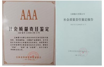 按照《吉林省社會質(zhì)量責任優(yōu)秀單位鑒定規(guī)則》規(guī)定,由企劃部申報的分割雞肉、雞肉調(diào)理品、火腿腸產(chǎn)品,于2009年8月順利通過專家鑒定,獲吉林省社會質(zhì)量責任AAA優(yōu)秀單位稱號。