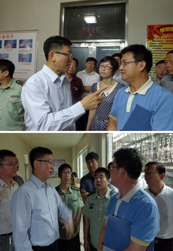 上午10:30分,吉林省副省長谷春立、市委書記馬延峰、市委常委常務副市長赫哲、市委常委、市委辦公室主任王克瑜、副市長白松巍、市安監局局長范卜、市公安消防大隊大隊長姜萬威等主要領導在吉林德大有限公司副總裁李振勇及安保部副總經理陳有富等領導的陪同下,檢查了屠宰廠分割車間和深加工車間。副省長谷春立對屠宰廠安全生產標準化工作、車間安全設備設施、員工數量和疏散通道等進行了詳細詢問,吉林德大有限公司副總裁李振勇進行了詳細具體的解答。谷春立副省長對正大集團吉林德大有限公司的生產現場管理給予了充分的肯定。